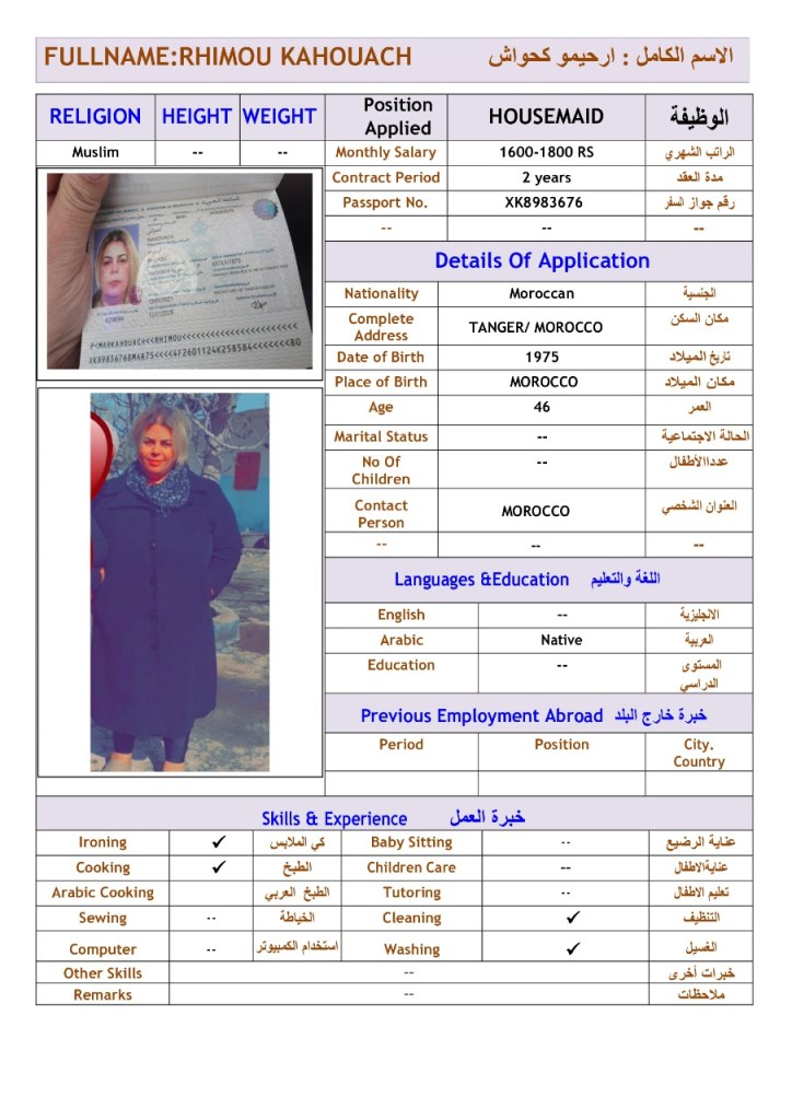 إستقدام المغرب ملحوظة : يرجي الضغط علي صورة السي في لتقديم طلب استقدام العاملة المنزلية من المكتب طلب عاملة منزلية جديدة استقدام من المغرب نساعدك على إختيار عاملتك المنزلية بضغطة زر تقديم طلب استقدام الكتروني الان شارك هذا الموضوع: المشاركة على X (فتح في نافذة جديدة) X شارك على فيسبوك (فتح في نافذة جديدة) فيس بوك إعجاب تحميل...